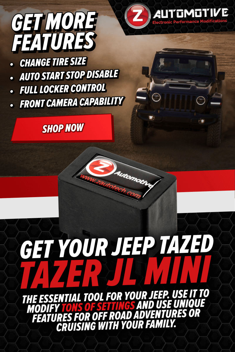 Z Automotive Tazer JL Mini Programmer For 2018-25+ Jeep Gladiator JT & Wrangler JL 2 Door & Unlimited 4 Door Models Z-TZR-JLM